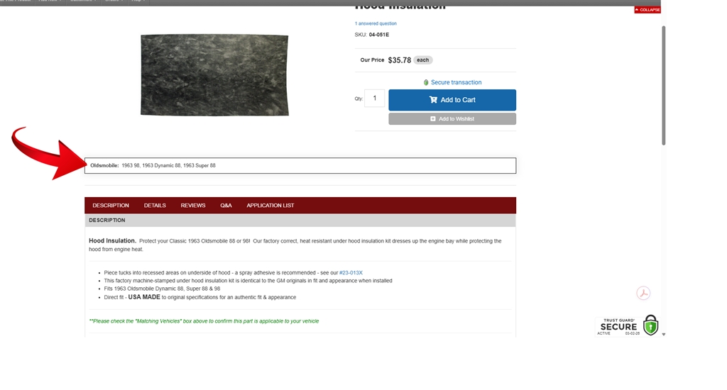 Will this fit a 1963 dynamic 88? Hood Insulation